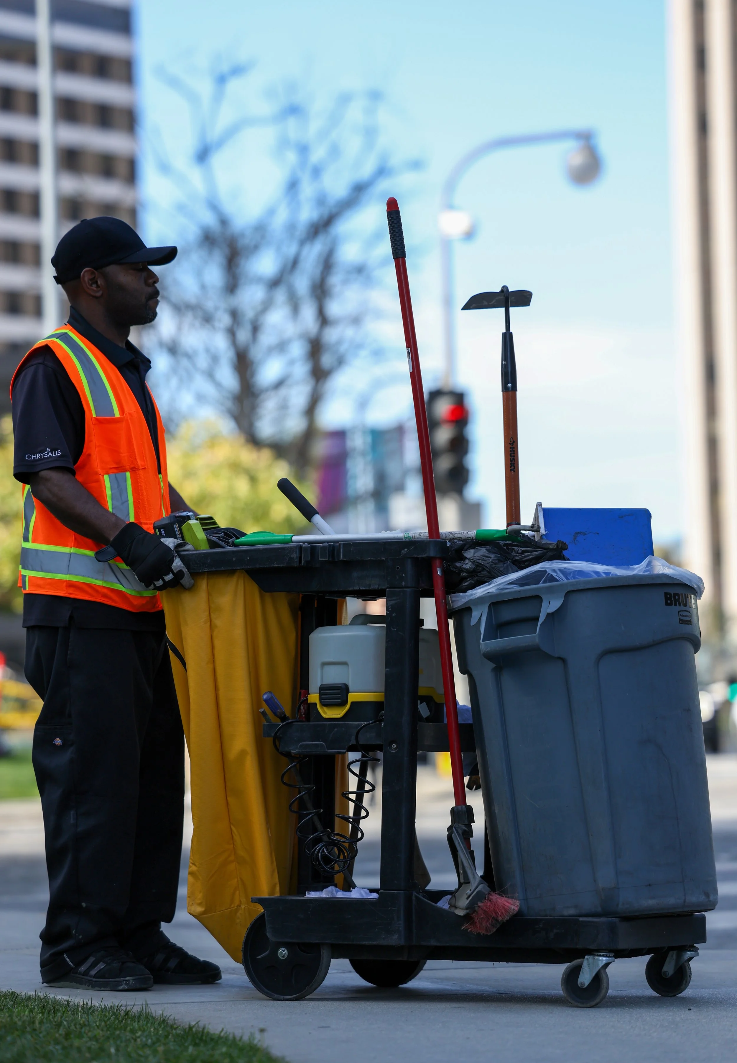 We employ Chrysalis Services to provide one day porter five days a week for eight hours a day. Our day porter services include emptying trash cans, sweeping up leaves/trash from sidewalks and gutters and removing stickersand graffiti.