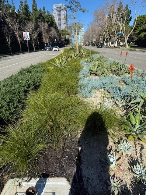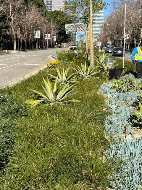 We maintain and irrigate over two dozen medians in Century City. These medians are located on Santa Monica Boulevard between Moreno and Century Park West and on Avenue of the Stars between Santa Monica and Pico Boulevards. We also maintain the Cloverleafs on Olympic leading to and from Avenue of the Stars as well as the green space on Century Park West between Solar Way and Santa Monica Boulevard.